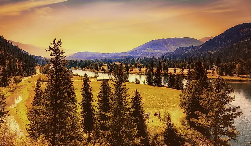 At the southern end of the Bitterroot Valley, Darby is surrounded by sharp mountain peaks and quiet forested slopes that shift into warm hues each year. The crisp air carries the sound of the Bitterroot River, and the quiet backroads feel calm and wide under the open sky.